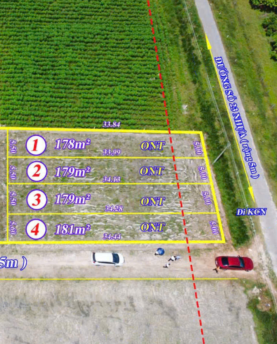 Bán 4 thửa đất tổng ngang 20m, dài 34m, có 400m thổ cư, giá 670 triệu