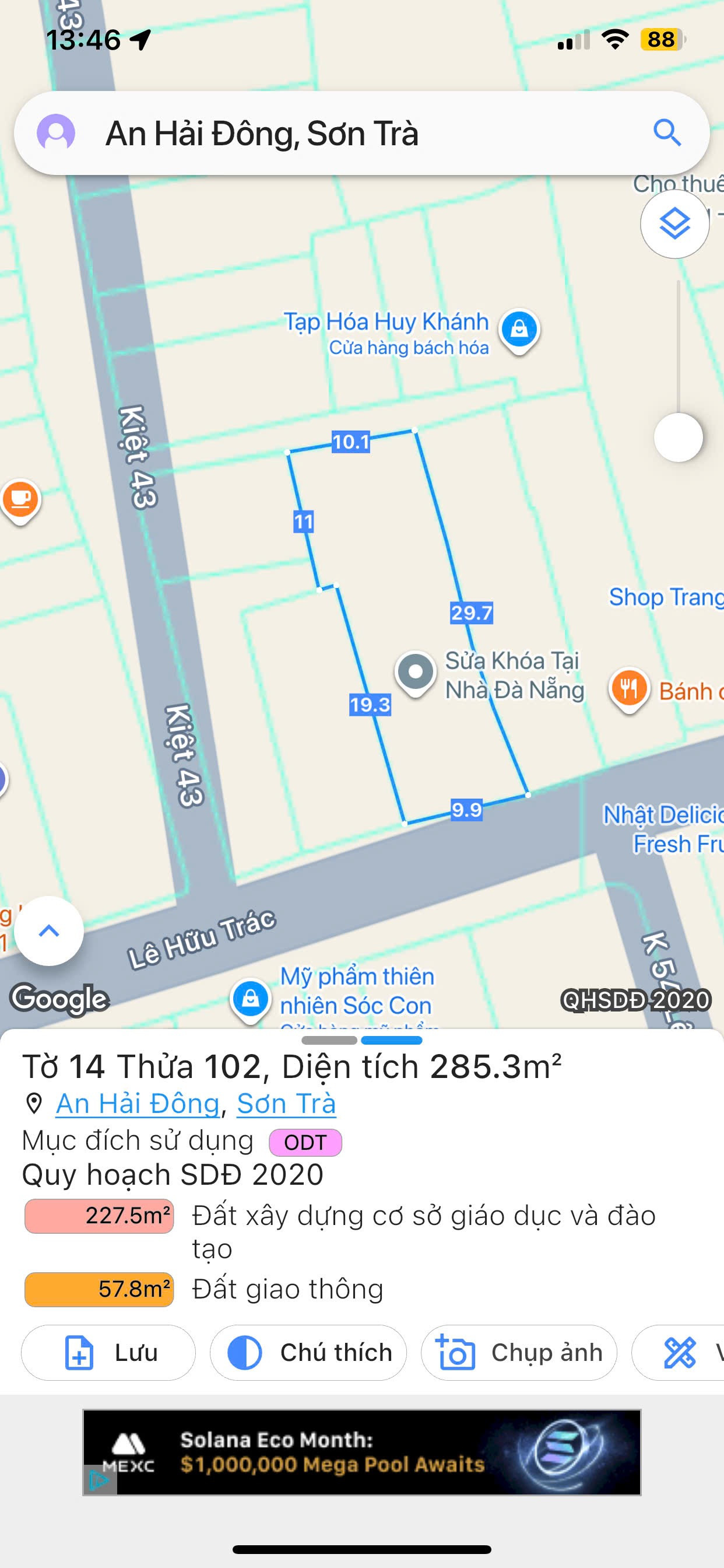 Chính chủ bán đất thổ cư đường Lê Hữu Trác, diện tích 285m², giá chỉ 28 tỷ (thương lượng). Đường rộng 5.5m, ô tô vào tận nơi. Pháp lý sổ đỏ chính chủ, sang tên nhanh chóng. Hướng cửa chính: Nam. Gần biển Mỹ Khê (1.4km), chợ An Hải Đông (200m) và nhiều tiện ích khác như trường học, bệnh viện, trung tâm thương mại. Liên hệ ngay để không bỏ lỡ cơ hội đầu tư này!