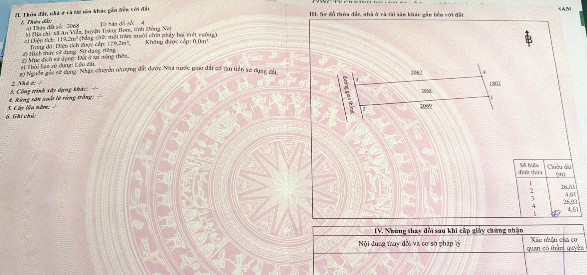 Chính chủ cần bán đất có diện tích 119.9m² tại Xã An Viễn với giá 1.8 tỷ. Đất ở 100% thổ cư, có đường nhựa ô tô vào được. Nằm gần sân bay Long Thành, thuận tiện cho di chuyển và phát triển. Diện tích 119.9m², giá 1.8 tỷ, giá 15.01 triệu/m². Khách hàng có nhu cầu xin liên hệ.