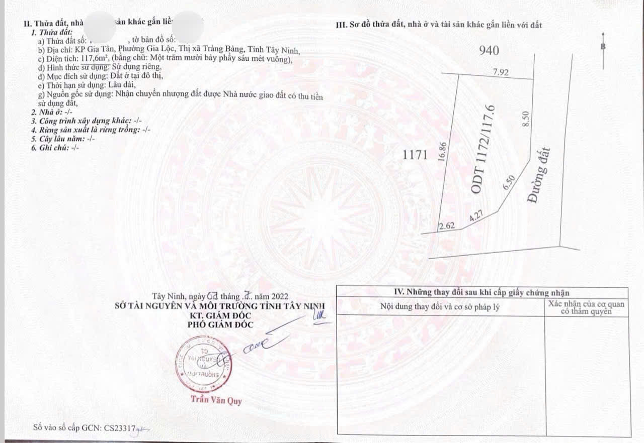 Bán gấp lô đất 2 mặt tiền 117m² tại KCN Trảng Bàng, giá chỉ 520 triệu