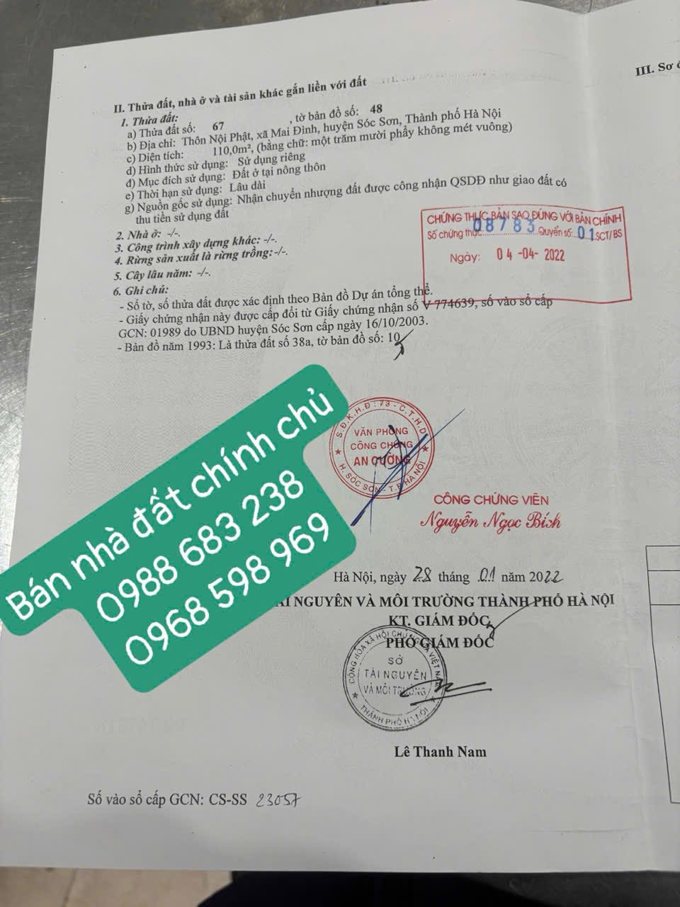 Bán đất thổ cư 110m² tại 80 Nội Phật, Sóc Sơn, Hà Nội giá 5.72 tỷ